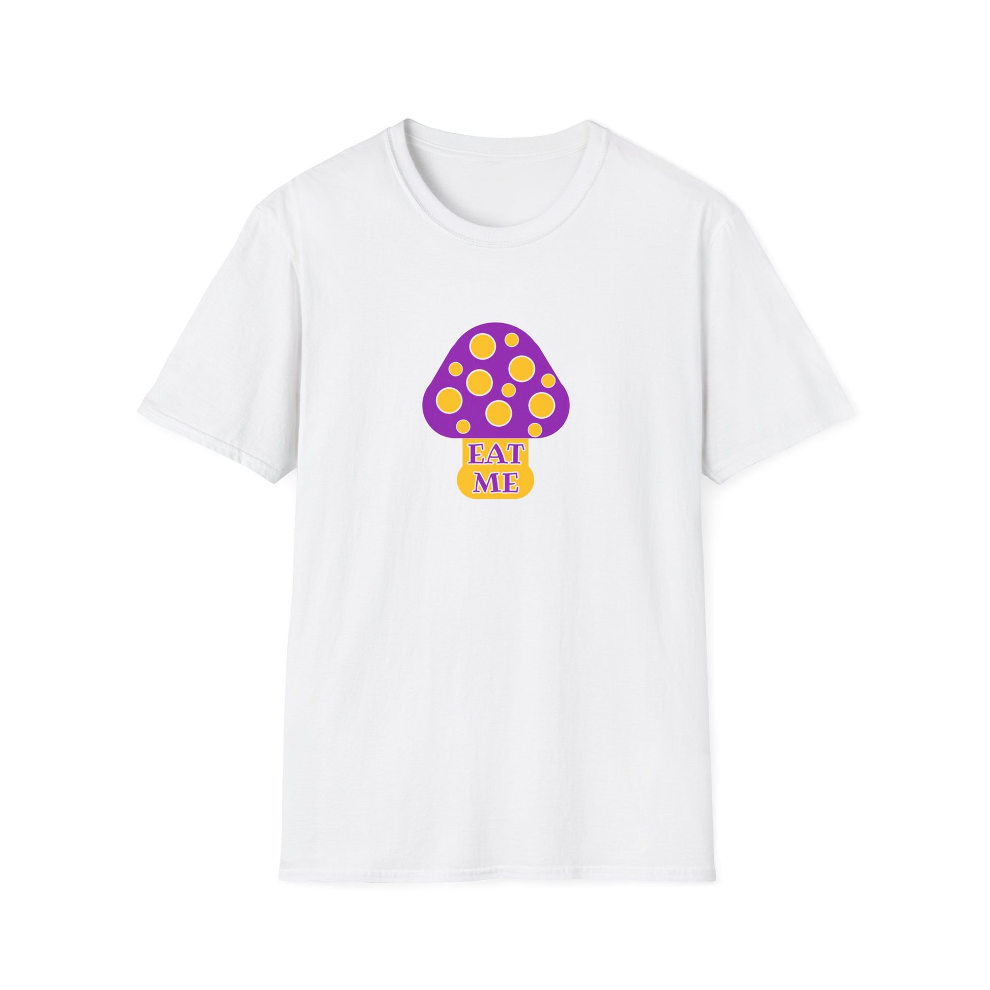 This unisex softstyle t-shirt combines comfort with playful design. Featuring a whimsical mushroom graphic and the phrase "EAT ME," it's perfect for those who want to express their fun personality. Made from 100% ring-spun cotton, it offers a soft and breathable feel, making it ideal for year-round wear. The classic fit suits both casual outings and slightly dressier occasions, making it a versatile wardrobe staple. Great for casual gatherings, birthday parties, or just lounging at home, this t-shirt is perfect for anyone with a sense of humor and style. Whether you're gifting it for a friend or treating yourself, this shirt is sure to be a conversation starter at festivals, themed events, or as a quirky everyday choice.