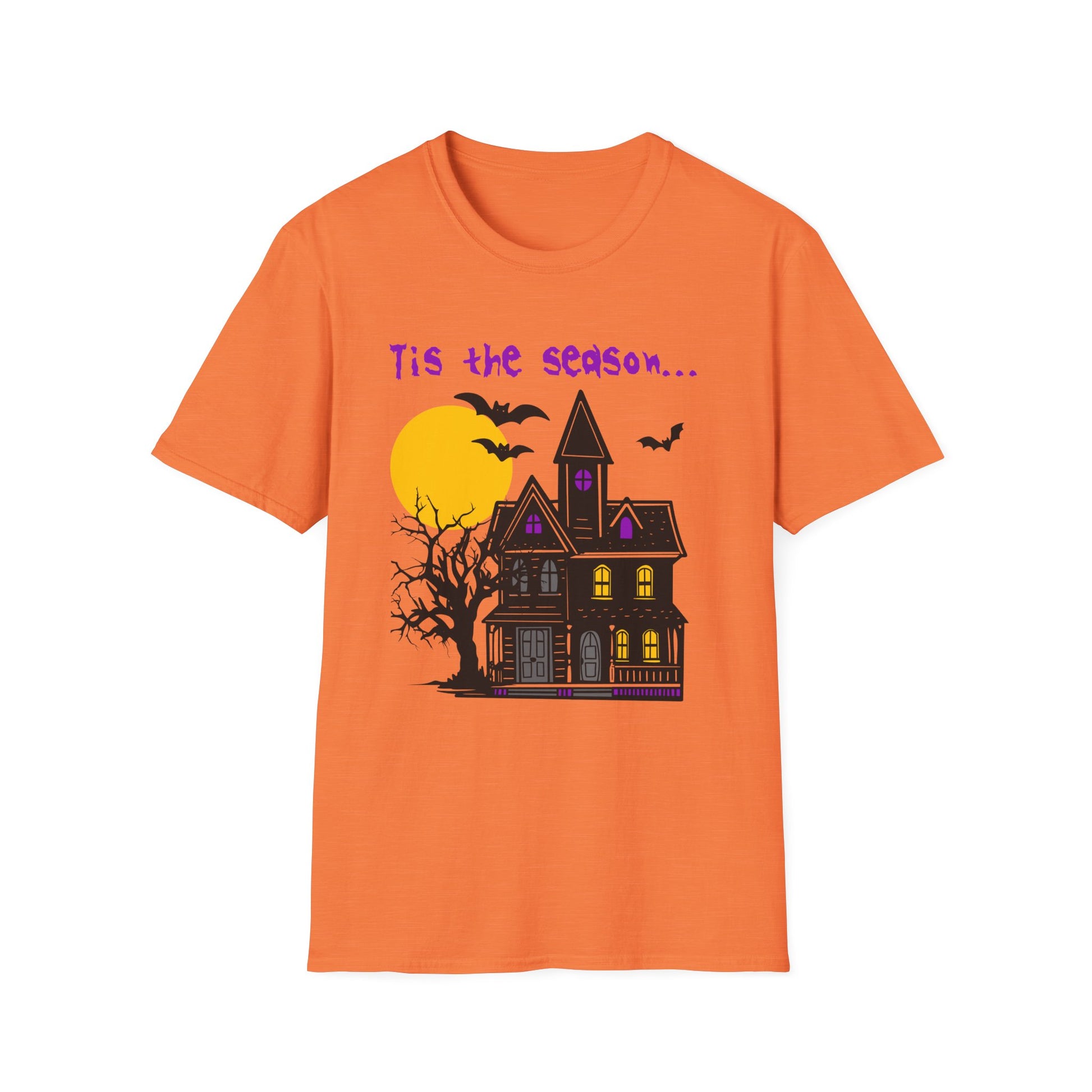Embrace the spooky season with this stylish unisex softstyle t-shirt, perfect for Halloween enthusiasts! With its eye-catching design featuring a haunted house, bats, and the phrase "Tis the season...", this shirt brings a playful spirit to your wardrobe. Made from ultra-soft, ethically sourced materials, it provides all-day comfort, making it ideal for festive gatherings or casual outings. Whether you're trick-or-treating, attending a Halloween party, or simply enjoying the fall season, this t-shirt will help you celebrate in style. It’s a great gift for fans of all things spooky, ideal for adults who want to showcase their fun-loving side during this enchanting time of year.