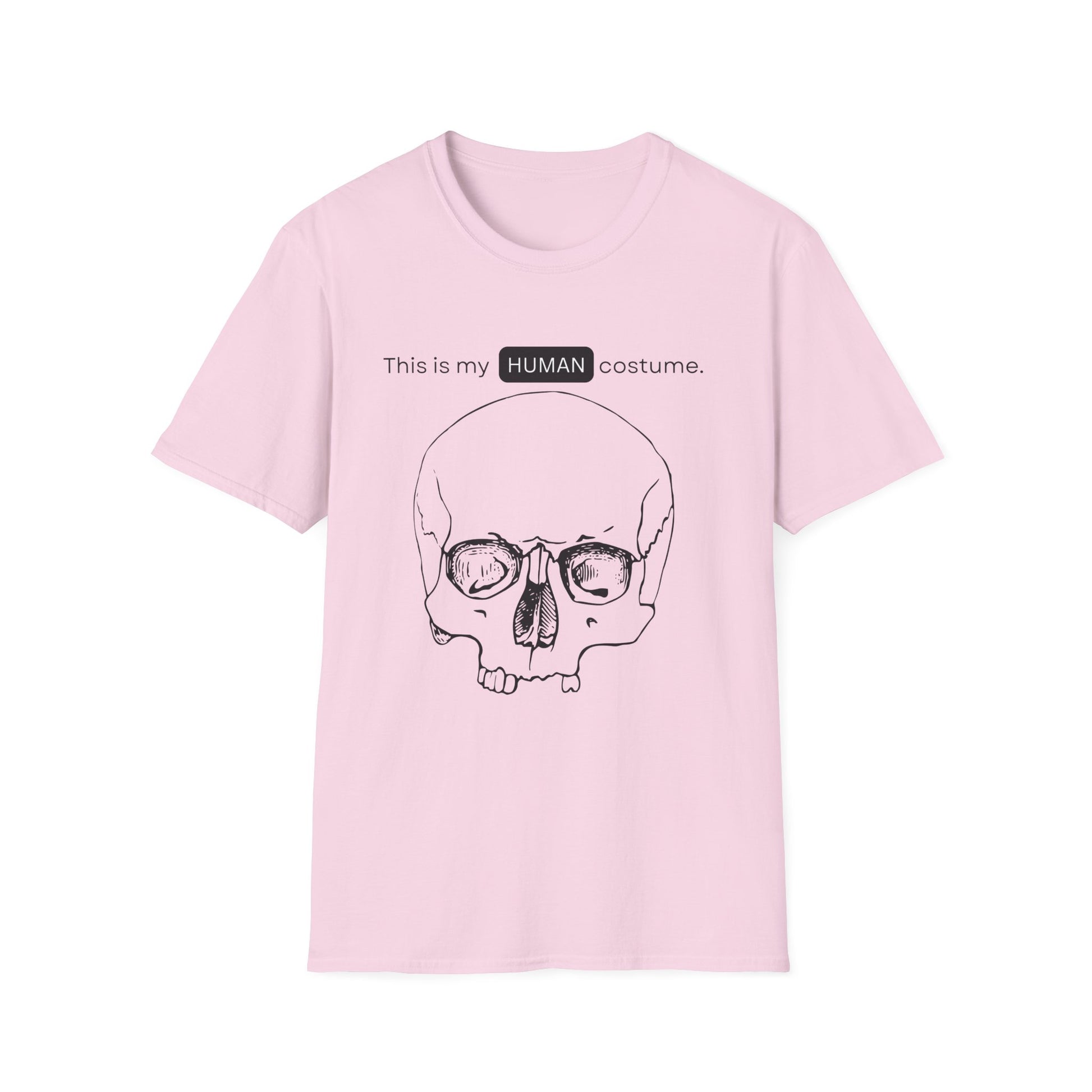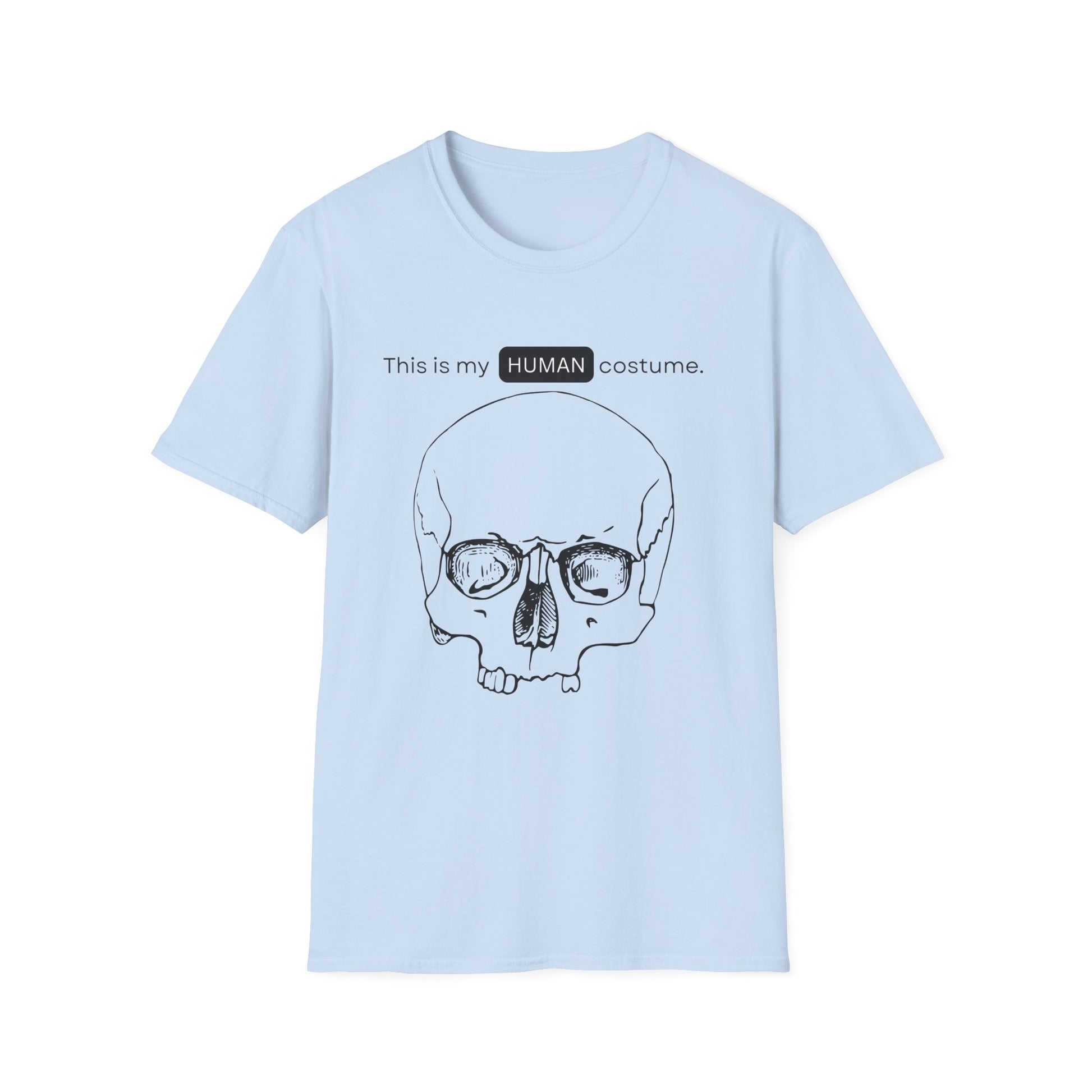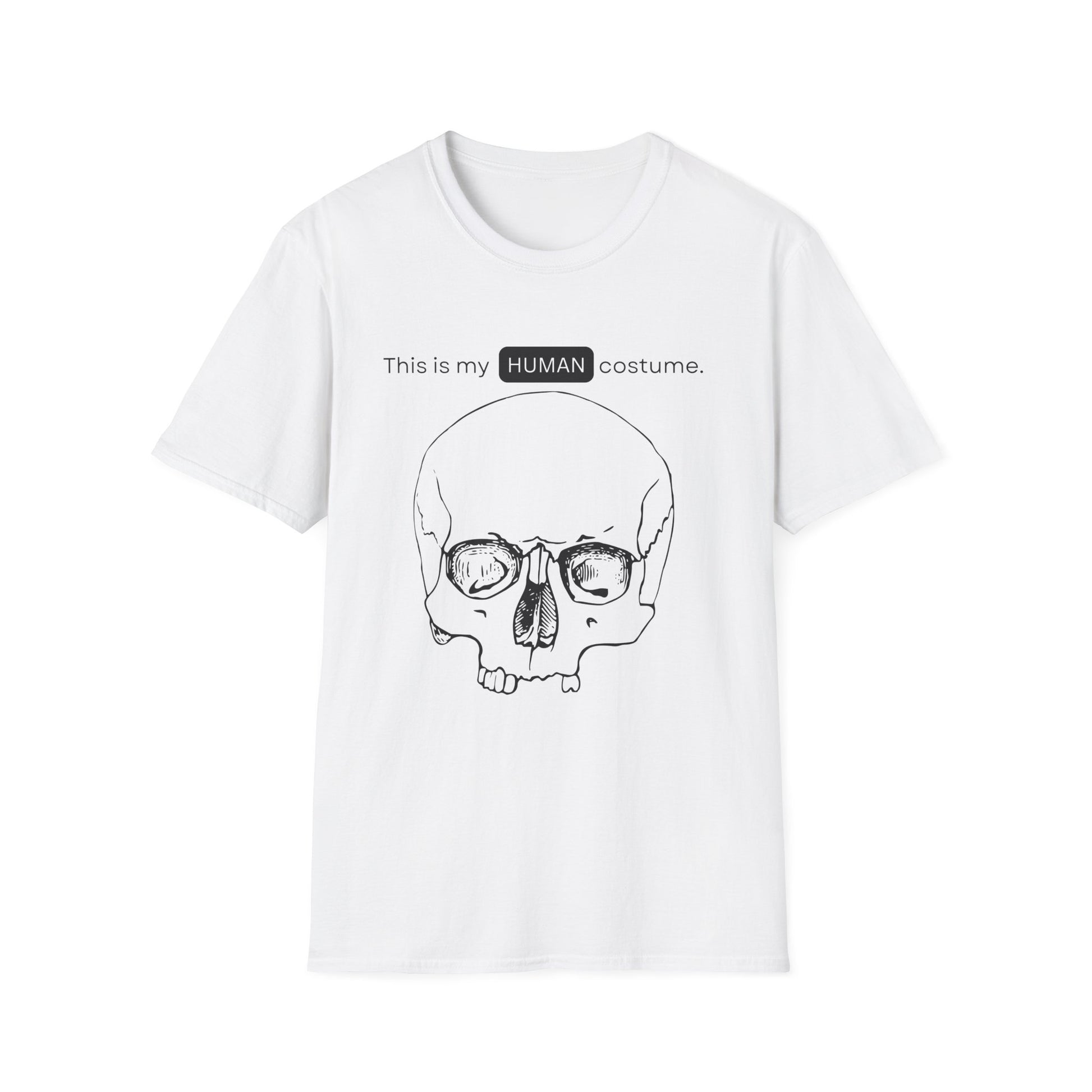 BIZR BAZR - "Human" Skull Costume T-Shirt, Funny Halloween Shirt, Unisex Graphic Tee, Unique Gift for Costume Lovers, Casual Wear for Parties