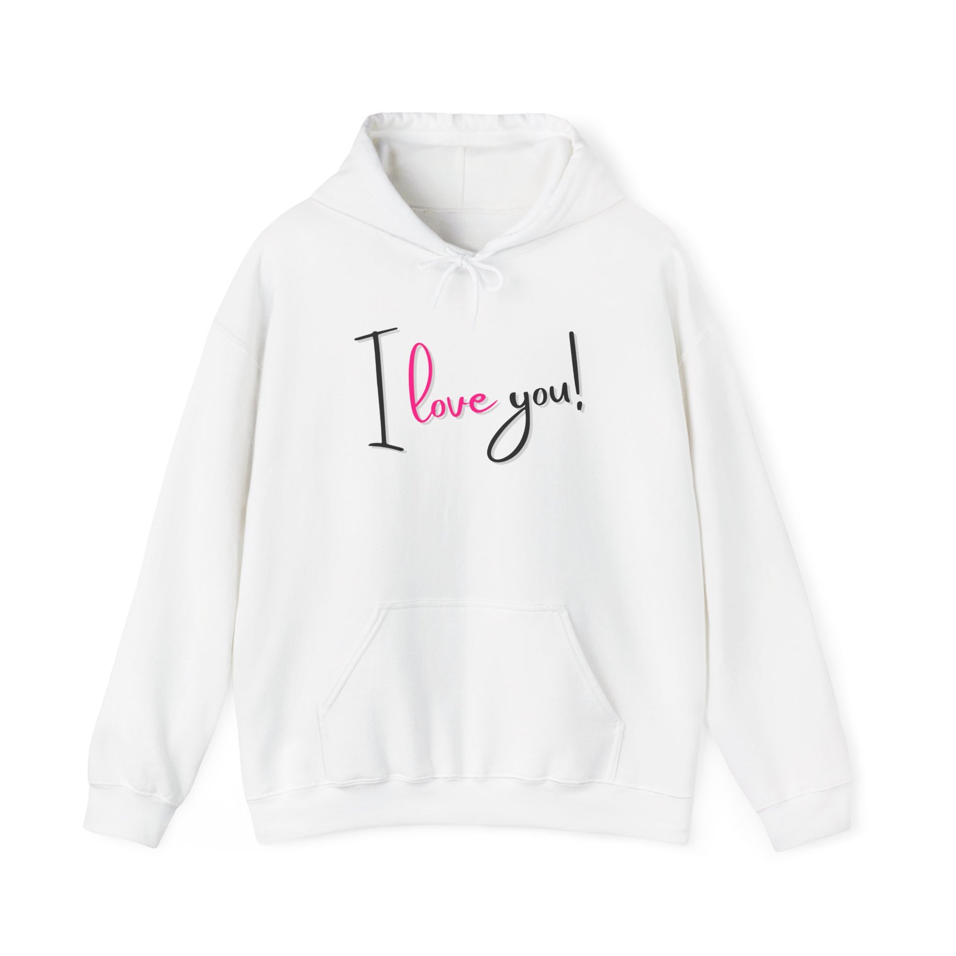 Wrap yourself in warmth and love with this cozy hoodie, perfect for any casual occasion. The soft blend of cotton and polyester provides a snug fit, ideal for chilly evenings and cozy gatherings. Its spacious kangaroo pouch pocket ensures your hands stay warm while adding a relaxed vibe to your outfit. This hoodie speaks volumes, featuring a simple yet heartfelt 'I love you!' design, making it a wonderful gift for partners, friends, or family members looking to express their affection. Great for holidays like Valentine’s Day, anniversaries, or simply as a reminder to spread love every day, this unisex hoodie fits seamlessly into the lives of those who appreciate comfort and kindness.