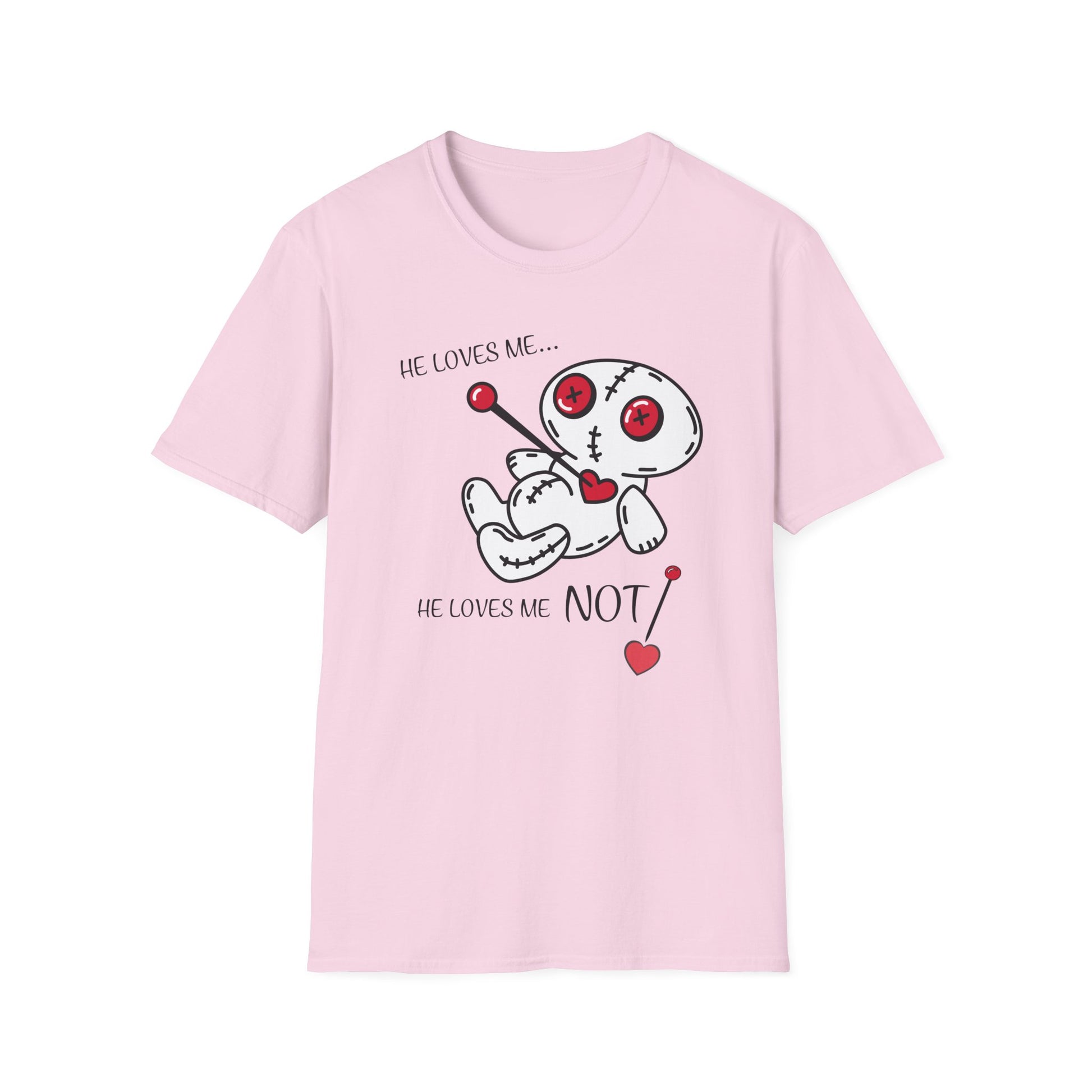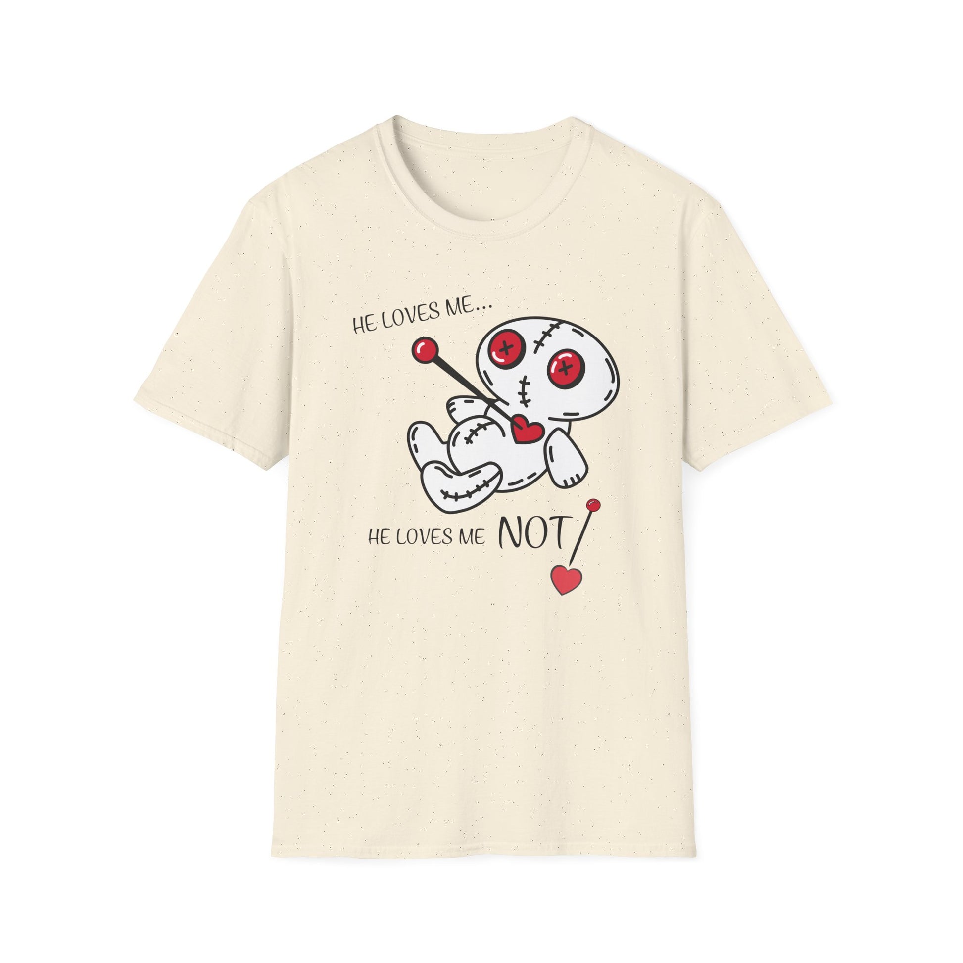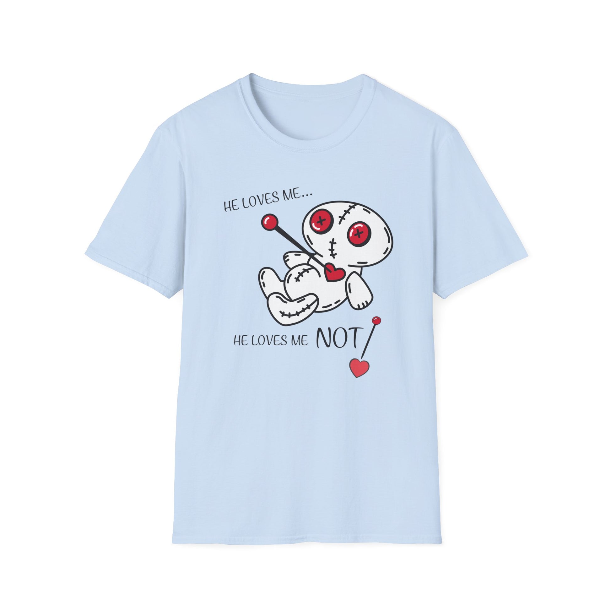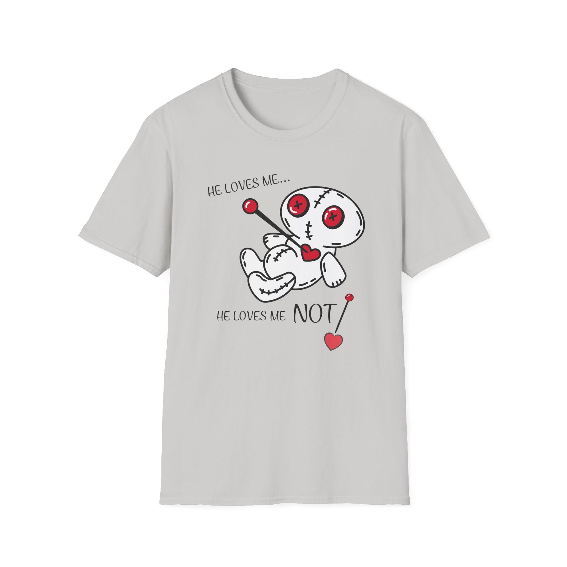 BIZR BAZR - Loves Me Not Voodoo Doll Unisex T-Shirt, Graphic Tee for Couples, Valentine's Day Gift, Spooky Fashion, Alternative Clothing