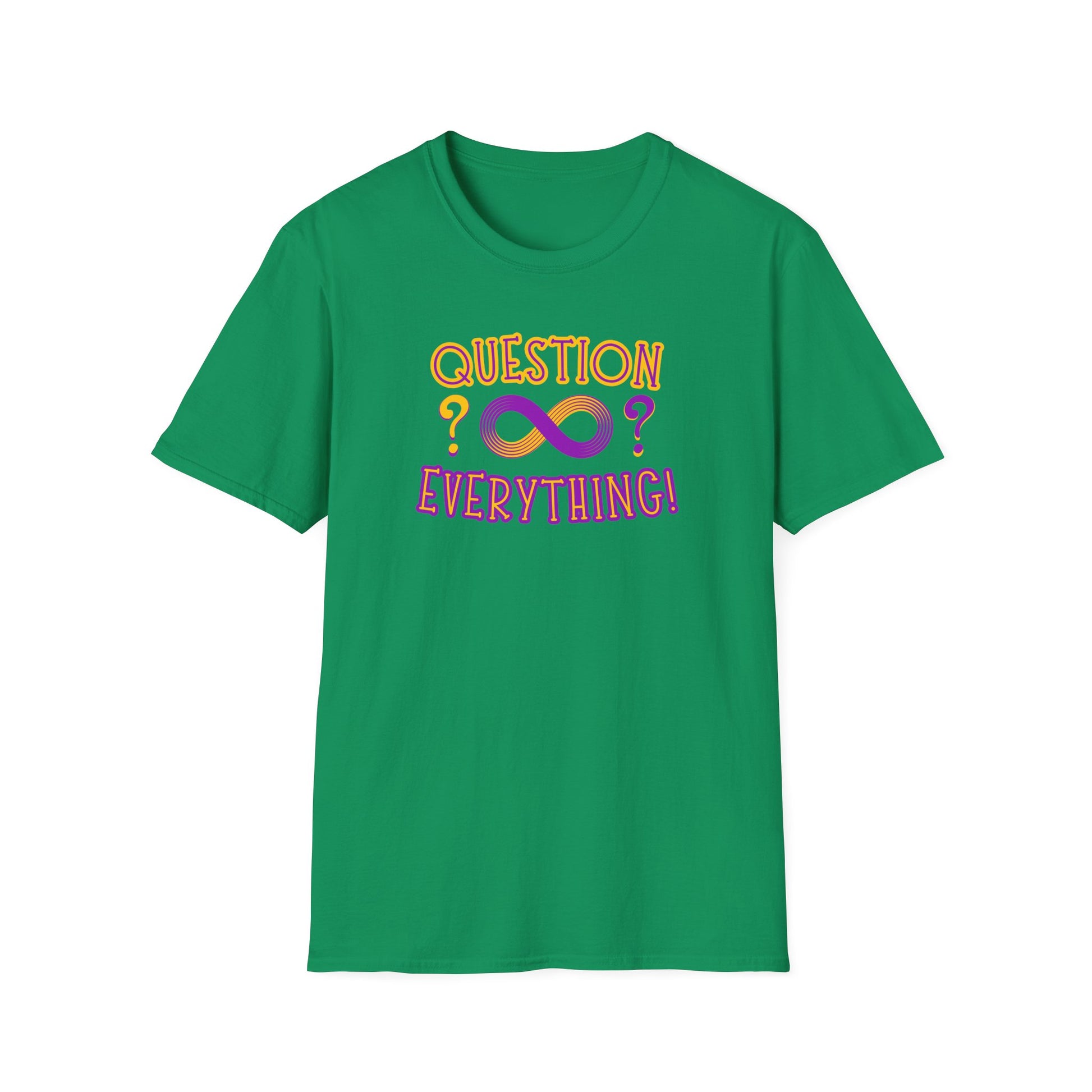 Embrace your curiosity with this unisex softstyle t-shirt that combines comfort and style effortlessly. Featuring a bold design that encourages questioning everything, this t-shirt is perfect for those who appreciate thought-provoking expression. It's made from lightweight, breathable fabric, ensuring a comfortable fit for all-day wear, whether you’re lounging at home or out with friends. Ideal for casual outings, this shirt suits anyone looking to make a statement while promoting open-mindedness. Perfect for birthdays, casual get-togethers, or just because, this tee invites conversation and adds a playful touch to any wardrobe. Celebrate your inquisitive spirit or gift it to someone who embodies it!