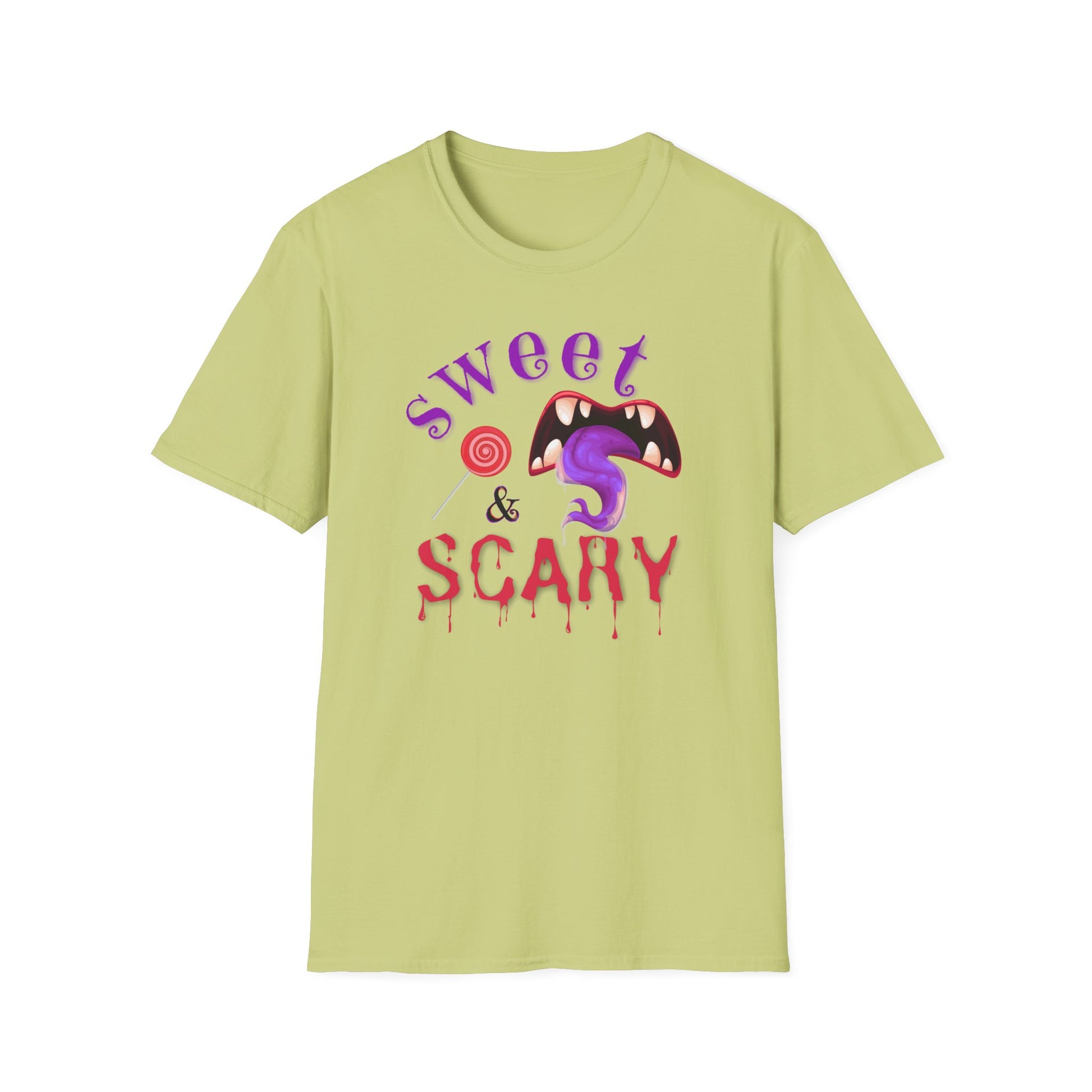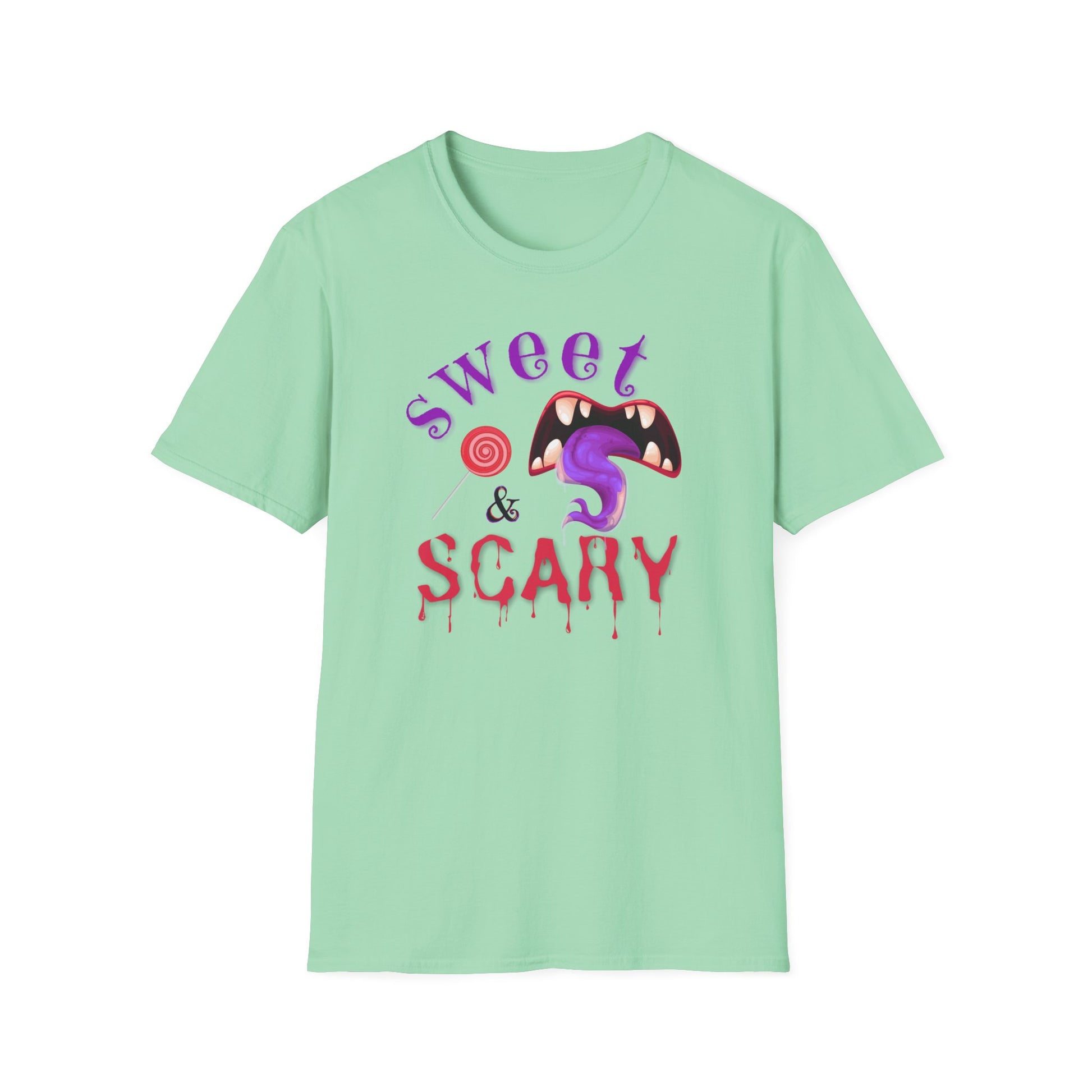 Introducing this stylish Unisex Softstyle T-Shirt, perfect for those looking to blend comfort with playful design. The "Sweet & Scary" motif brings a fun, whimsical vibe that is perfect for everything from casual outings to Halloween festivities. Its soft fabric feels great against the skin and makes it a go-to choice for everyday wear, while the eye-catching design makes it an ideal piece for festive celebrations. Whether you’re heading to a costume party or enjoying a relaxed gathering with friends, this t-shirt suits anyone looking to express a bold personality. It’s especially relevant for those who love Halloween or enjoy unique graphic tees year-round, making it a perfect gift for birthdays, or just to treat yourself!