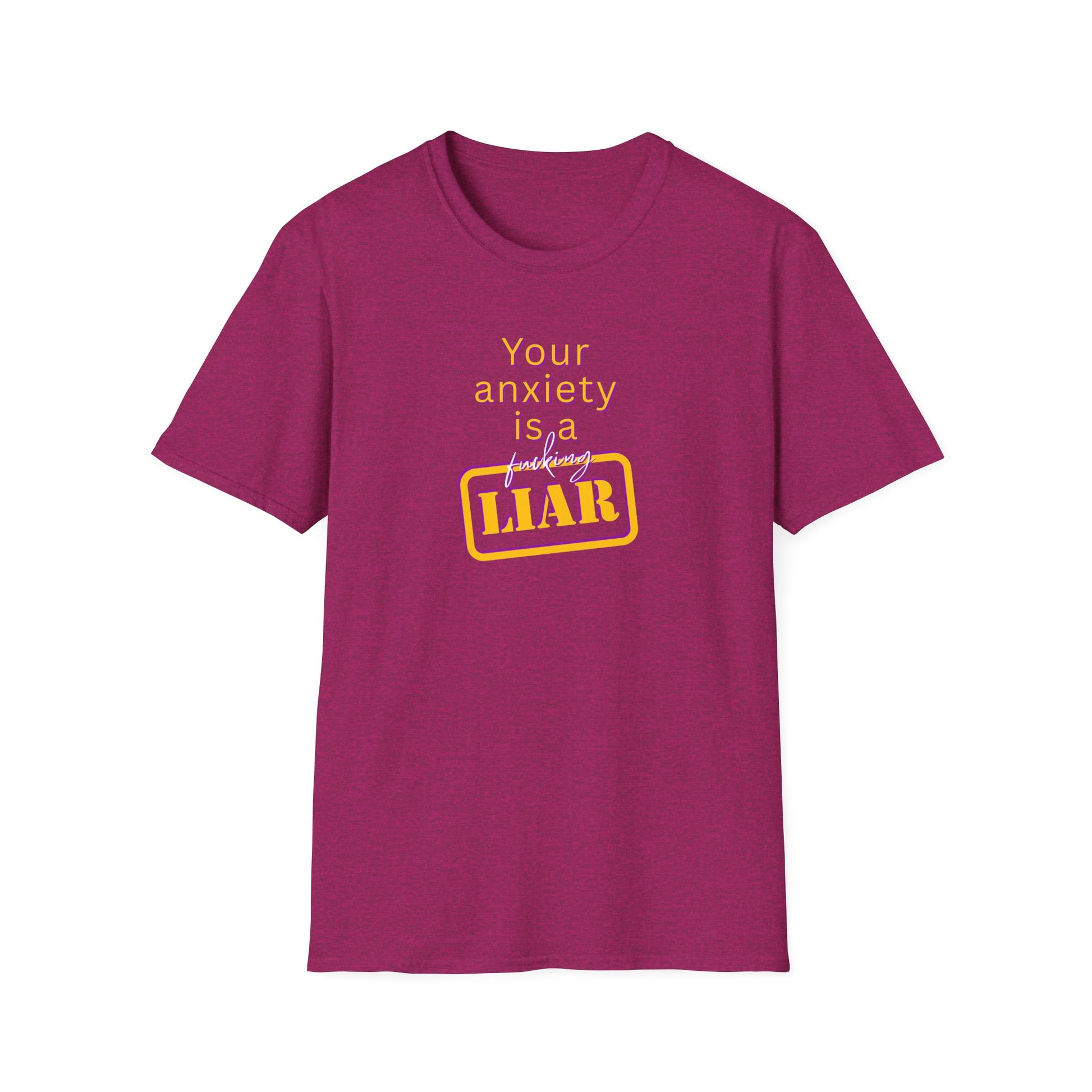 BIZR BAZR - Your Anxiety is a Liar T-Shirt, Funny Anxiety Tee, Unisex Graphic T-Shirt, Casual Humor Shirt, Gift for Mental Health Awareness